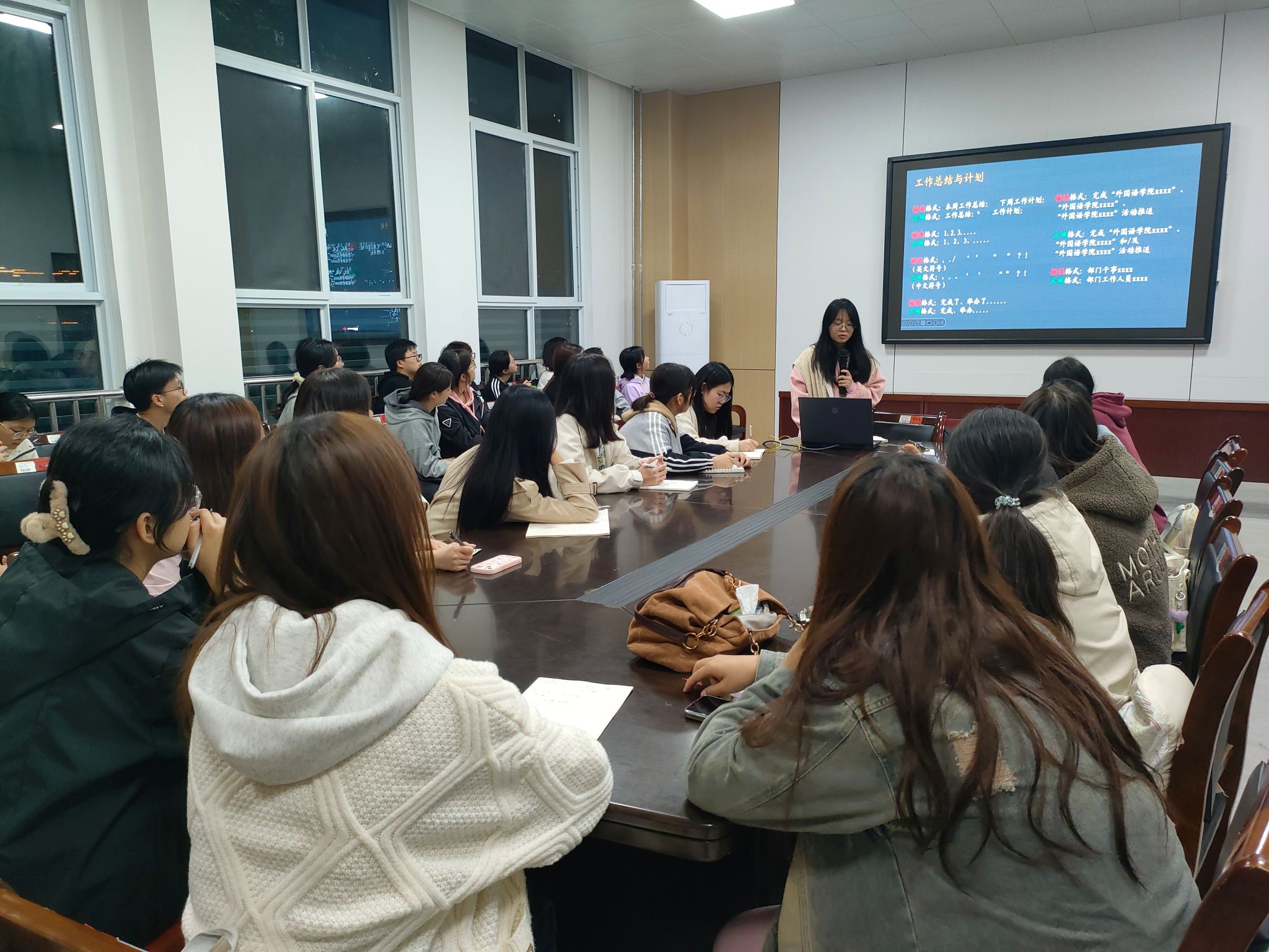 会议伊始,杜薇表示此次会议内容丰富,希望同学们认真听讲,并将所学知识运用到工作中,不断提升自身能力,尽快适应部门工作,为今后提升工作效率和工作质量打下坚实的基础。接着,申梦倩从威廉williamhill团委学生会的组织架构、活动四件套的格式要求、工作总结与工作计划的撰写要求、会议记录要求、以及办公室值班工作的注意事项五个方面展开进行讲解,她强调,同学们要严格按照文件格式规范整理活动四件套,提升工作质量。随后,杨雨从新闻稿的各个段落写作要求出发,向同学们详细讲解了新闻的写作格式和要求,并通过错误示例分析指出新闻写作中常见的问题,提醒同学们在今后的新闻写作过程中要避免出现类似的问题,帮助同学们深刻理解新闻写作的要求。最后,曹雨前向同学们说明了新闻及活动照片拍摄的基本要求,她提醒同学们在拍照过程中应注意画面清晰明亮、突出关键人物和活动亮点,增加照片的吸引力和美感,并结合具体情景向同学们介绍了照片的拍摄技巧,希望同学们可以学以致用,在接下来的工作中不断提升自己的照片拍摄能力。