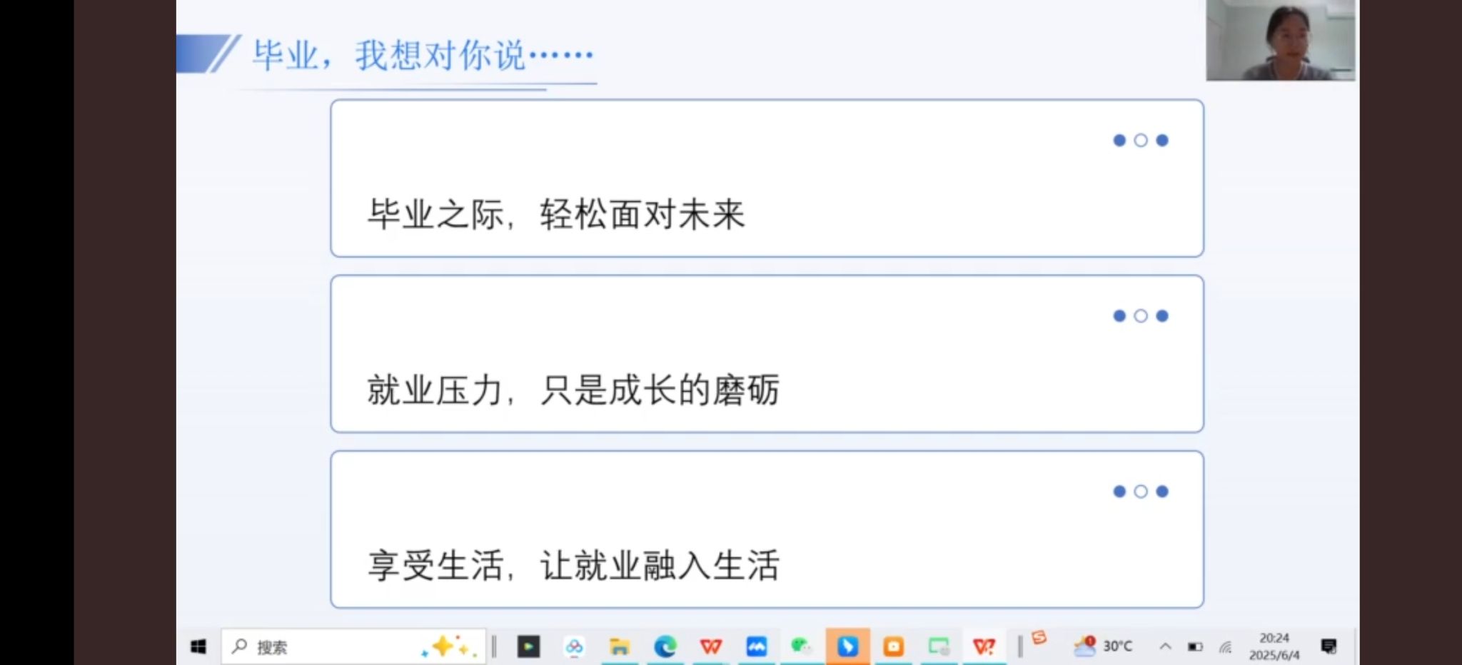 为切实关注毕业生的心理健康与成长需求,帮助2025届毕业生以积极、阳光、自信的心态应对毕业季的挑战与转变,顺利迈入人生新征程,6月4日晚上,威廉williamhill组织召开了毕业生心理疏导大会。本次大会由21级辅导员韦士心主持,2021级全体学生参加。