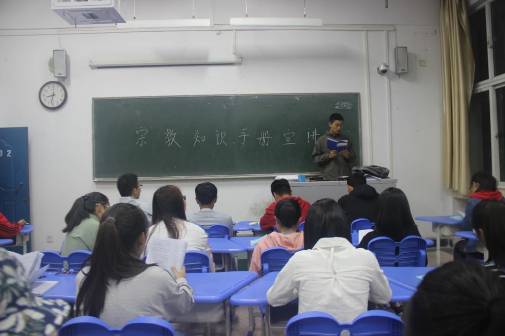 活动开始,由大二学生为代表,带领新生阅读宗教手册,并从我国的宗教政策、宗教信仰自由、宗教独立等多种方面,高度概括宗教政策,形成完整的知识框架,方便新生学习。紧接着,由新生中少数民族代表发言,介绍自己的民族特色,分享自己的宗教信仰,将理论化为实践,给同学们呈现了别样的民族风情。活动期间,所有同学都正襟危坐,认真学习,收获颇丰。学习最后,新生分享自己的学习成果,为活动画下圆满的句号。