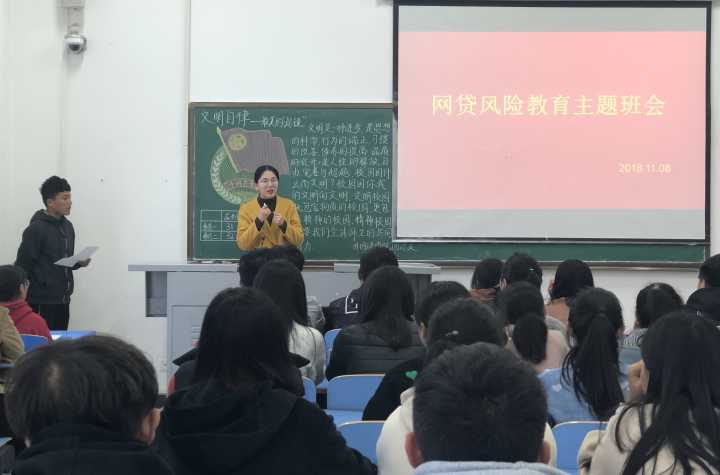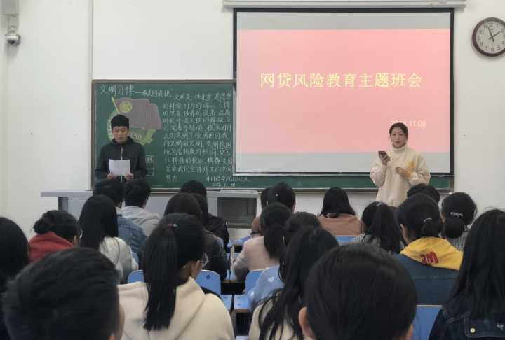 各个班级不约而同的提到近年来新闻曝光的几起大学生校园借贷案件。案件中校园贷款公司在逾期催收上,经常采用频繁短信、威逼恐吓、“黑社会”上门、骚扰家人等暴力催收行为。韦士心老师从身边的故事讲起,让同学们切身体会到了不理性网贷的危害,并且告知同学们,远离校园贷,远离深陷校园贷的人。随后,薛天桥老师从贷款平台风控漏洞多、学生人身安全受到威胁、贷款违约风险高、贷款动机复杂化四个方面对大学生校园借贷进行了风险分析,指出校园借贷不仅会对学生的人身安全造成威胁,也影响了学校的日常治安管理。