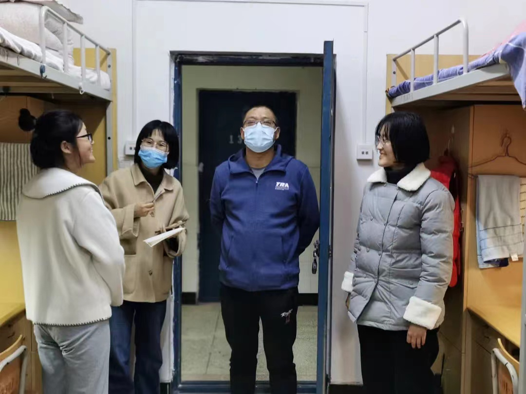 在本次活动中,院系领导通过参加主题班会、座谈、报告等形式广泛联系学生,听取了各班级基本情况介绍,与同学们进行了深入的交流。在与各班班委对接中,蒋领敏表示,会在最短的时间内了解并熟悉班级的每一位同学,及时准确的解决学生在日常生活中的实际问题,指导学生成长成才。同时,她也勉励同学们,要树立远大理想,不忘责任二字;要练就过硬本领,提高担当能力;要砥砺奋斗,做堪当大任之人。此外,党委副书记田占范也带领辅导员深入学生宿舍,亲切地询问同学们的学业和生活,叮嘱同学们要做好个人卫生、宿舍卫生,为同学们进行学业规划和指导,鼓励同学们铭记当代青年的使命,践行时代责任。