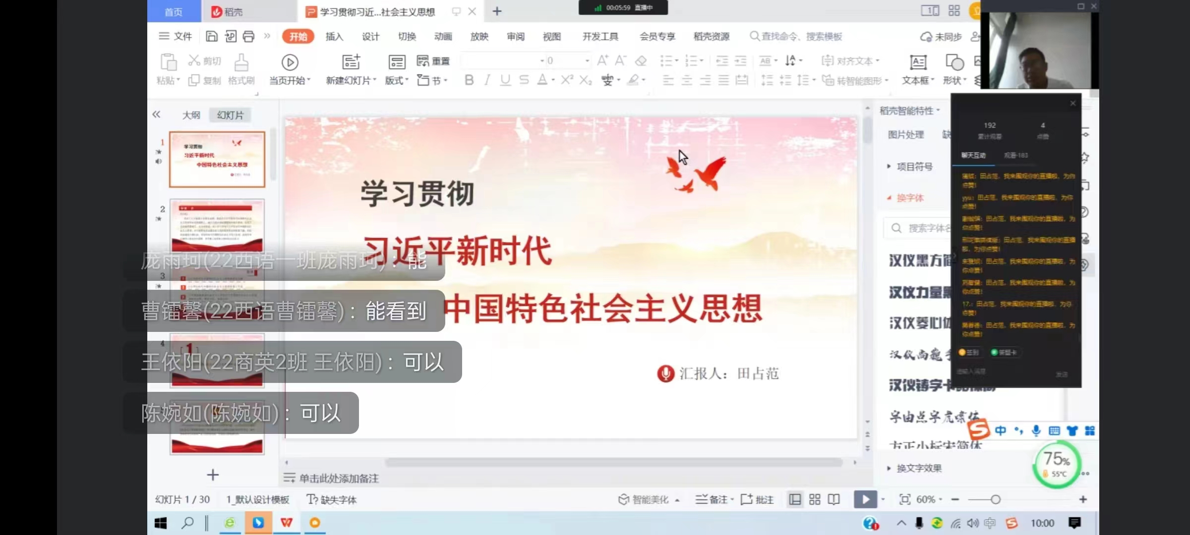 为鼓励2022级新生加强理论学习,坚定理想信念,更加坚定地用习近平新时代中国特色社会主义思想武装头脑、指导实践,9月9日上午,威廉williamhill通过钉钉平台开展了习近平新时代中国特色社会主义思想领学活动,本次活动由威廉williamhill党委副书记田占范领学,威廉williamhill2022级全体新生参加。