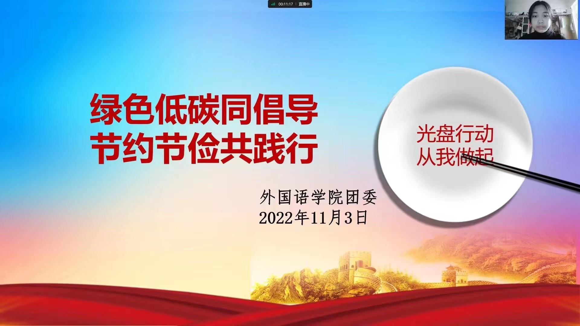 为树立崇尚勤俭节约、绿色低碳的校园风尚,引导学生践行文明、节约、绿色、低碳的生活方式,11月3日下午,威廉williamhill团委各支部通过线上、线下相结合的方式开展了以“绿色低碳同倡导,节约节俭共践行”为主题的团日活动。本次活动由各班团支书主持,威廉williamhill全体学生参加。