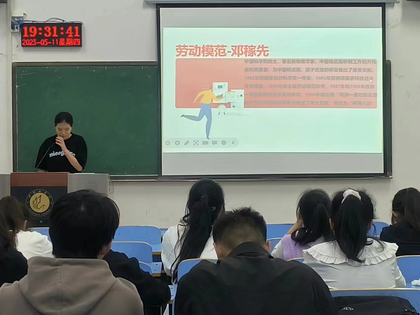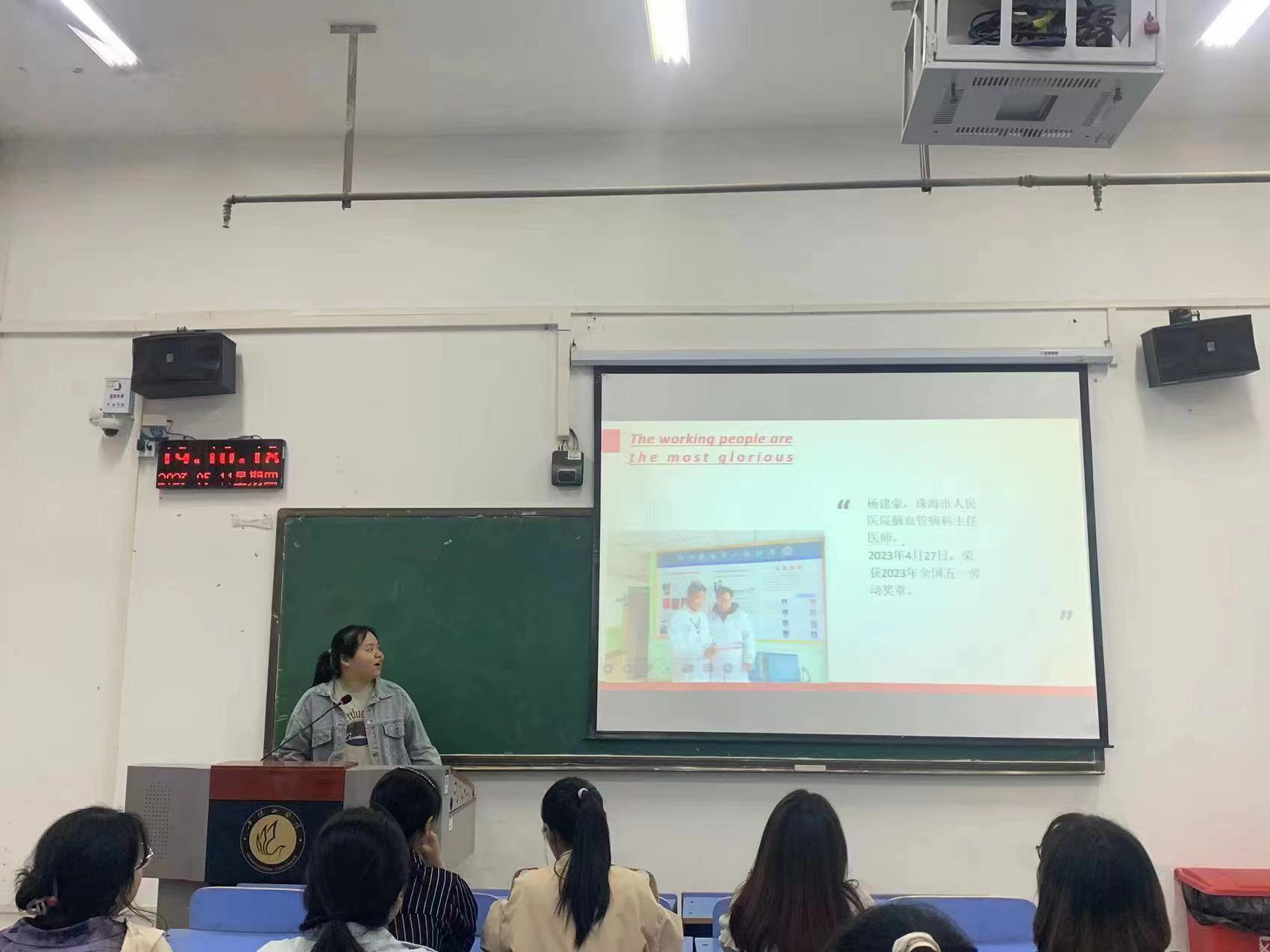 活动伊始,讲述者们分享了部分劳模代表的先进事迹,讲述了他们在岗位上积极响应党的号召,奋斗在基层一线,默默坚守、爱岗敬业的故事,并鼓励同学们接续奋斗,以青春之火践行初心使命。接着,讲述者们满怀激情地讴歌了劳模们克服困难、勇往直前以及在新时代努力创造幸福和美丽生活的奋斗精神,帮助同学们树立正确的劳动观,引导同学们积极投身劳动,感受劳模精神。最后,讲述者们结合生活实际,号召大家从小事做起、从身边做起,学习身边劳模,凝聚奋进力量。同学们纷纷表示,在今后的学习与生活中会以劳模为榜样,积极践行劳模精神,争做新时代的奋斗者,以劳模精神诠释责任担当,以奋斗赢得美好未来。