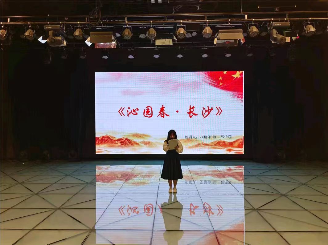 此次比赛分为两个环节,第一环节为定题双语朗诵环节,选手选择红色经典作品进行双语朗诵并分享自己的感悟。在同学们的朗朗诵读声中,深切感受浓浓的爱国情怀。第二环节为即兴朗诵环节,题目由选手提前抽取并于现场对文稿进行诵读。在比赛中,同学们充分利用专业知识,用清晰的发音,铿锵有力的语调,娴熟的口语能力,真情地表达了对祖国的热爱。最后评委老师根据选手们两个环节的表现进行综合评析。
