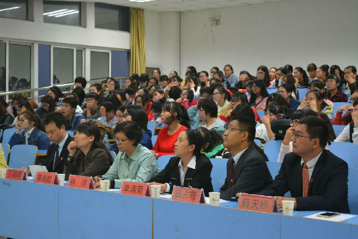 10月16日晚,在图书馆501教室举行“十佳大学生”颁奖典礼。外国学院党总支书记单满菊教授、院长林萍教授、党总支副书记田占范老师、副院长蒋领敏老师、学工办主任薛天桥老师及党政办公室主任丁超峰老师出席了此次会议,200余名学生代表参加了此次会议。