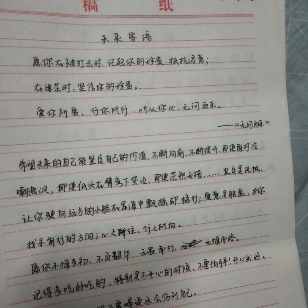 活动开始前,同学们带来了准备好印有“william威廉中文”字样的稿纸,他们满心憧憬着在纸上一笔一划的写着自己对未来的期许。寄语里有关于自己的,有关于家人朋友的,也有关于梦想的,一字一句记录的都是对未来的美好和炙热。同学们认真书写着,时不时脸上露出灿烂的笑容,场面气氛十分融洽。最后,同学们将自己写的未来寄语装进信封,交于负责人统一收齐并邮寄给“未来”。