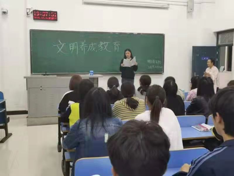 班会上,辅导员老师强调了同学们在校园生活中要自觉践行文明学生行为规范,注意个人文明礼仪和文明行为,同时要加强文明宿舍的建设,在各个方方面面落到实处,一步一个脚印,将“文明”当做一门课程, 认真学习。随后,同学们畅所欲言,谈论到身边的不文明现象,可侧面突出“不文明”带来的危害性及不利的影响,如“说脏话”、“乱丢垃圾”,不仅是素质低下的表现,不利于人际的交往,更会影响学校“文明、和谐”的优良风气,影响学院的声誉。又如“带食物进教室”、“在寝室使用大功率电器”这些不文明行为,影响到他人的利益皆应摒弃。最后,老师们要鼓励同学们要“养文明,树新风”, 才能“兴教育,育人才”,不断规范自身行为,争做优秀大学生。班会期间,同学们认真听讲,热情发言,场面气氛十分融洽。