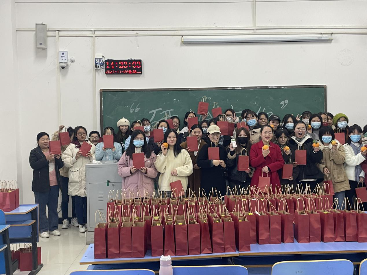 随后学院领导和老师为来到现场的考研学生代表送上附有祝福卡片、糖果、面包、牛奶和寓意“心想事橙、橙功上岸”的“考研橙”温馨礼包,收到礼包的同学们倍感温暖与关怀。为避免聚集,会后,学生会的同学将其余礼包分别送到其他一百余位备考学生手中。