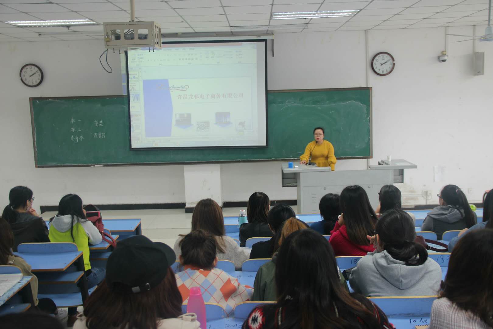 招聘会开始,许昌龙祁电子商务有限公司代表蒋名珠上台进行宣讲。她先是从主要出口商务、合作商品两个板块,详细介绍该公司的主要业务情况,突出该外贸事务对该公司的重要性,让同学们感受到了该公司对外语人才的渴求。紧接着,公司简介、公司介绍、员工风采、员工风采,蒋名珠用概括的语言、多彩的图片,给同学们展示该公司的风采。介绍中,她多次提到,外语专业的人才广阔的就业前景和丰厚的工资报酬,让同学们更加坚定了好好学习的信心。招聘会最后,蒋名珠表达了对同学们衷心的祝愿,并表示,许昌龙祁电子商务有限公司欢迎同学们的加入,为招聘会画下圆满的句号。