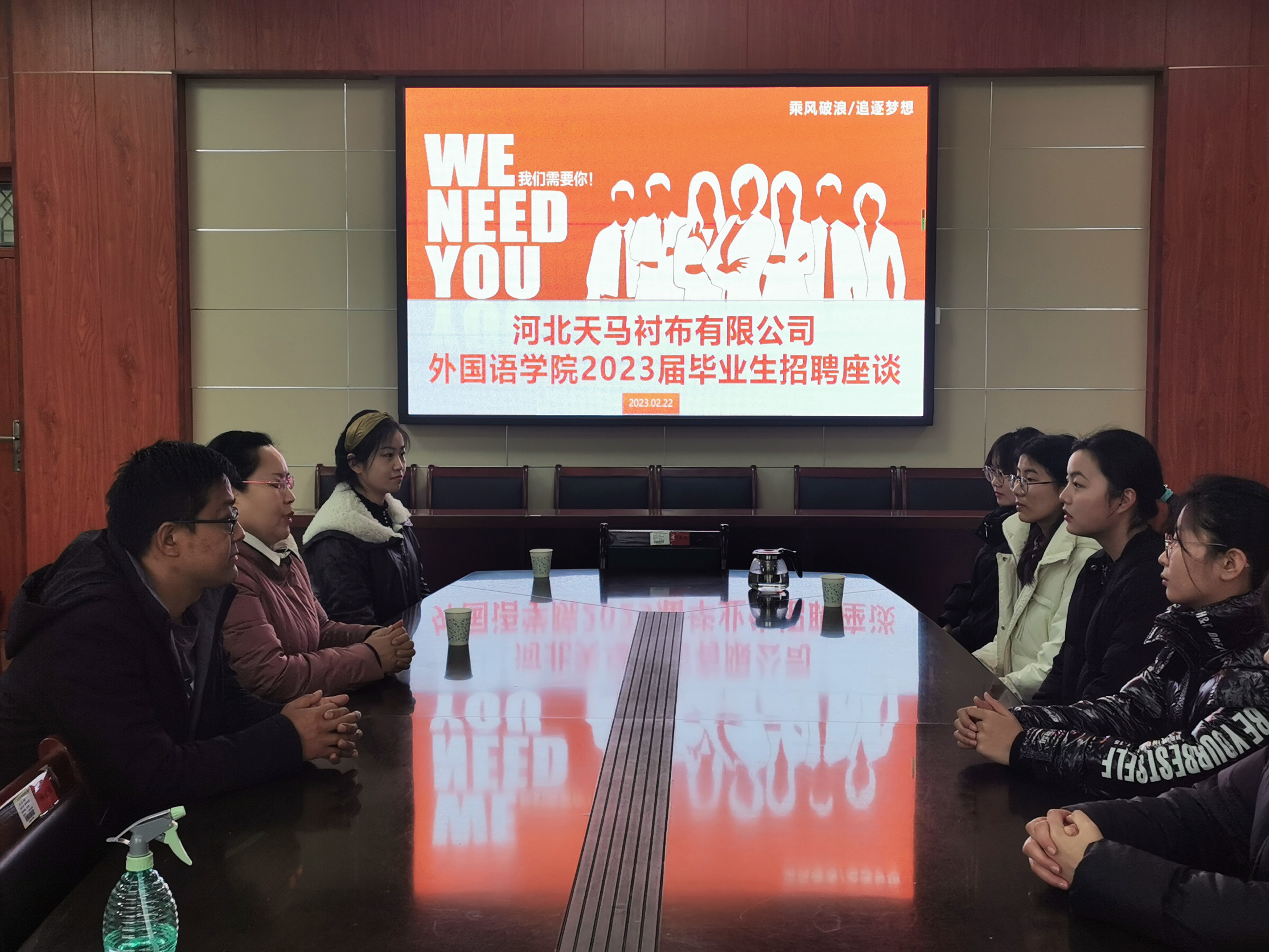 为进一步推进毕业生就业工作,助力构建毕业生与用人单位的交流平台,2月21日上午,威廉williamhill在于图书馆716召开了专场招聘会,此次招聘会由河北天马衬布有限公司的负责人胡欣松主讲,威廉williamhill部分毕业生参加。