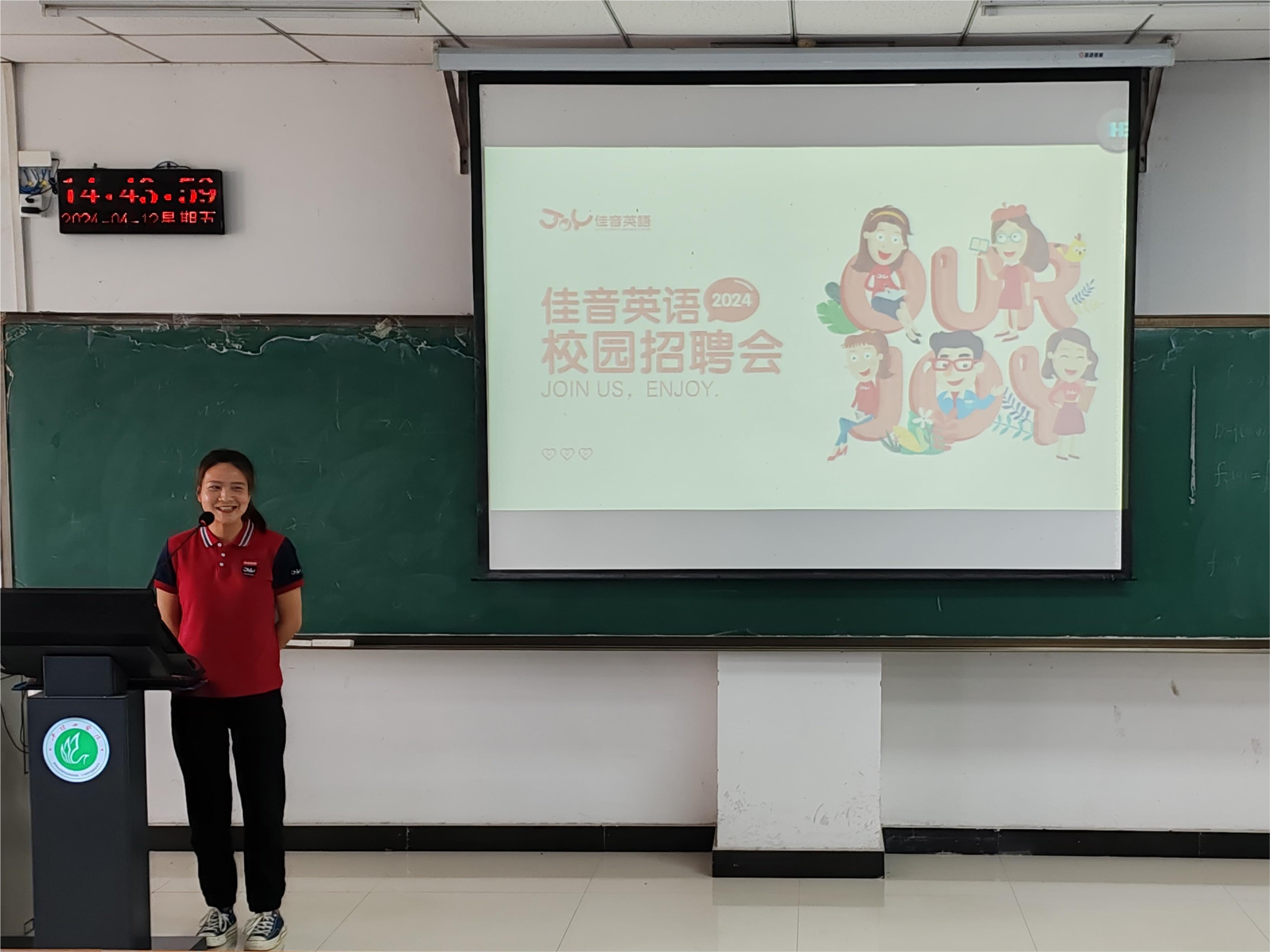 宣讲会伊始,刘晓宇带领同学们观看了佳音英语培训学校的相关宣传视频,并根据视频内容,从师资力量及学校发展战略等方面进行了简要介绍,帮助同学们更好地了解学校的基本情况。随后,刘晓宇向同学们详细讲解了学校的业务范围、校园文化及岗位需求,并通过分享自己的亲身经历鼓励同学们努力奋斗,抢抓机遇,根据自身的实际情况选择工作岗位。最后,刘晓宇根据同学们提出的问题,如薪资待遇、福利补贴、工作环境等进行了耐心解答。她讲到,佳音英语培训学校的工作氛围良好,薪资待遇优越,希望同学们结合自身的实际情况积极投递简历。同学们积极发表自己的观点和看法,并纷纷表示,今后会不断夯实自身能力,提高自身竞争力,为实现更好地就业打下坚实基础。