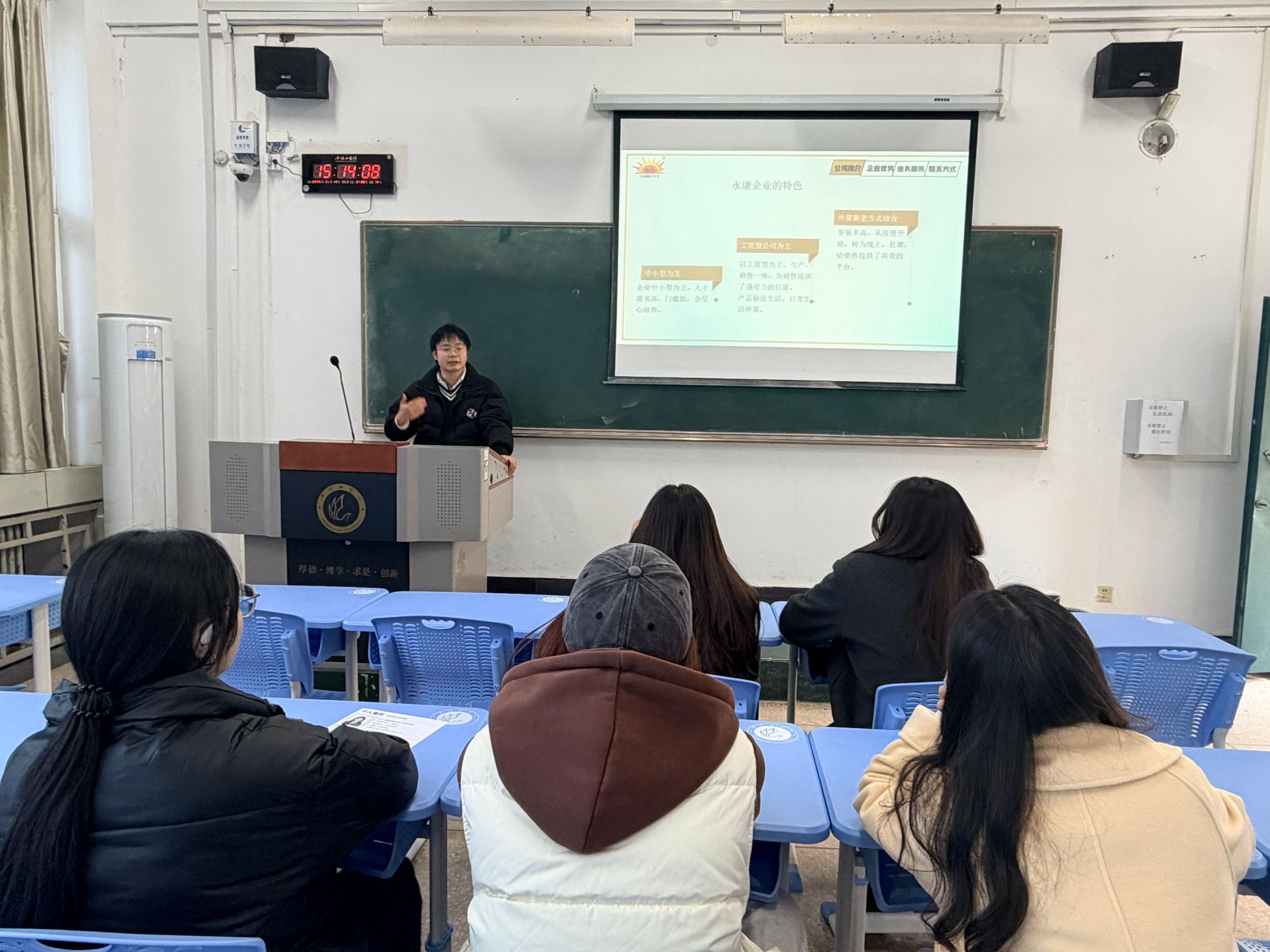 宣讲会上,张阳光首先介绍了公司概况,作为全国首家阿里巴巴人才服务商,公司专注为跨境电商企业提供外贸人才招聘与技能培训服务,是永康市政府重点扶持的人才对接机构,拥有2000多家合作企业资源,发展前景广阔。针对外语类毕业生,公司推出了外贸业务员、跨境运营专员、跟单员三大岗位,明确要求应聘者需具备英语四级及以上水平,并且具有外贸兴趣与责任心。此外,企业还将为新入职员工提供系统培训与业务指导,助力毕业生快速融入职场、提升岗位实操能力。同学们纷纷表示,通过本次宣讲会清晰了解了跨境电商岗位的实际需求,对自身职业方向有了更明确的规划。