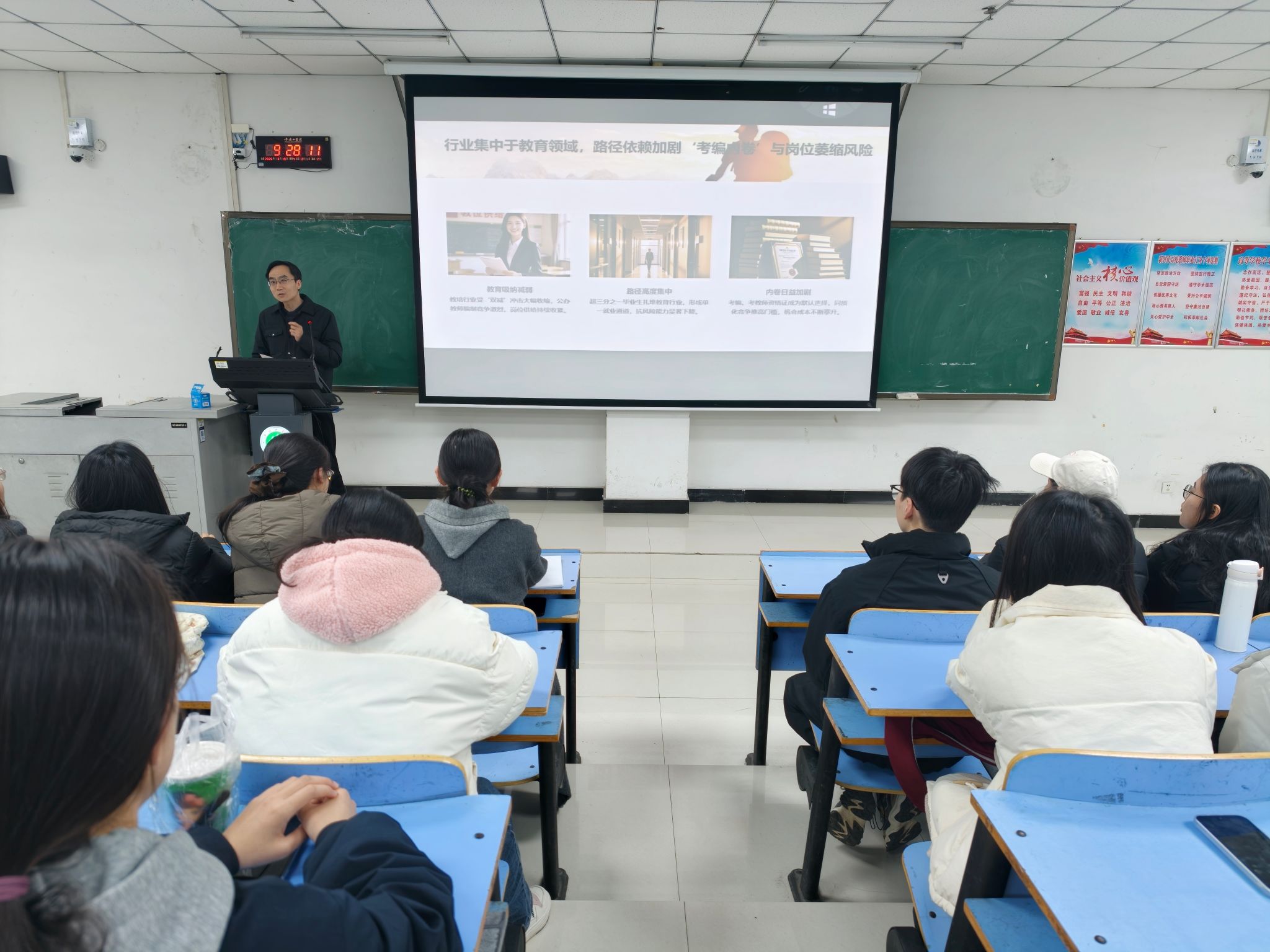为深入落实高校毕业生就业工作部署,精准助力 2026 届毕业生明晰方向、提升能力、实现高质量充分就业,3 月 19 日,威廉williamhill举办 2026 届毕业生就业指导专题讲座。学院党委书记甘泉主讲,2026 届全体毕业生参加活动。