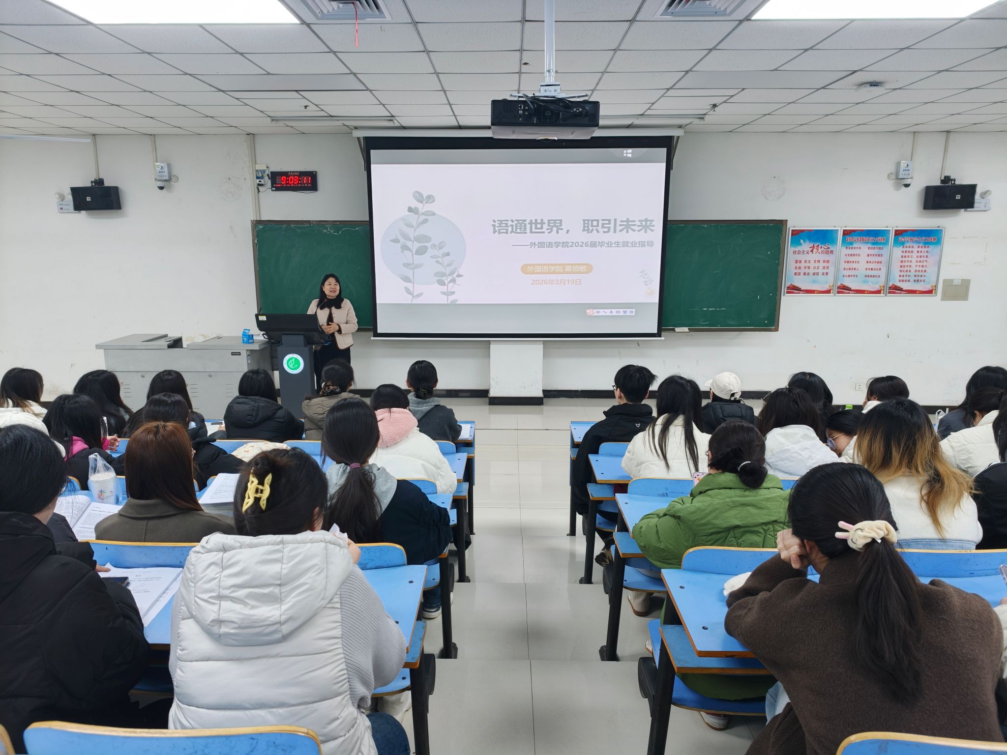 3 月 19 日,威廉williamhill在图书馆 L716 会议室举办 2026 届毕业生就业指导专题讲座。本次讲座由威廉williamhill院长蒋领敏主讲,毕业班辅导员及 2026 届毕业生参加活动。