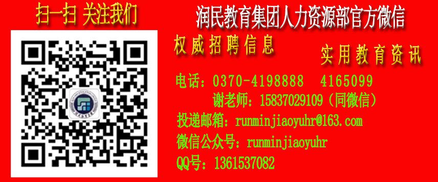 微信公众号(为便于您应聘,敬请您关注公众号):runminjiaoyuhr