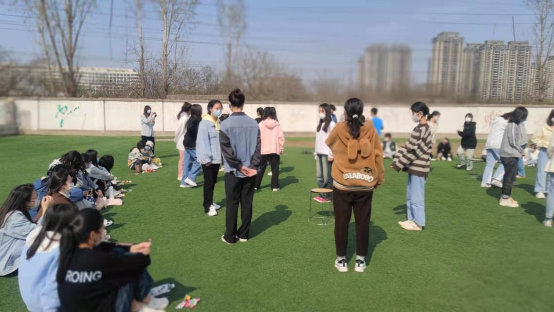 本次活动在空旷、活动范围大的操场举行,避免了人员的密集,同时积极遵守防疫政策要求,全体师生主动佩戴口罩,做好个人防护。本次活动主要分为“不负春光”团建游戏环节、“抬头前行”学生表演展示环节两个部分。共同提升学生的团队协作意识,增强学生自信心。