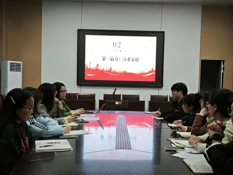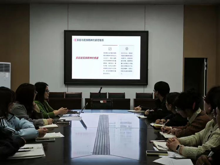 学生党员胡梦宇同学为大家详细解读了习近平总书记关于家庭、家教、家风建设的重要论述。她结合生动的案例和深刻的理论阐释,深入浅出地讲解了家庭作为社会基本细胞的重要作用,以及家风家教对个人成长、家庭和睦与社会和谐的深远影响。在交流分享环节,第一支部书记袁立文老师结合自身成长经历,分享了家庭对个人价值观形成的深远影响。她提到,自己在成长过程中深受父母言传身教的影响,诚实守信、勤奋努力的家风让她在工作中始终保持严谨负责的态度。她强调,作为党员,应将优良家风融入日常生活中,以良好的家风带动党风政风,为社会风气的持续好转贡献力量。第二支部书记韦士心老师则从家庭教育的角度出发,分享了自己在家庭建设中的感悟。她指出,家教不仅是知识的传授,更是品德的塑造。党员应注重言传身教,以正确的人生观和价值观引导身边的人,让良好的家风成为个人成长的基石。她鼓励党员同志们将家风建设与党员使命相结合,以实际行动践行初心使命。